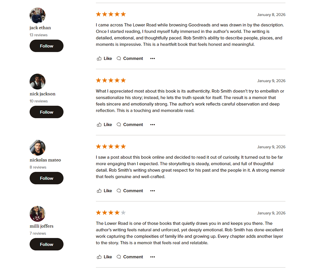 Told through the keen eyes of a young boy, The Lower Road captures the joys and trials of country life: building secret treehouses, dodging snakes, surviving icy winters, and witnessing the slow unraveling of a marriage. At its heart is a mother whose quiet strength and fierce love guide her family through uncertainty and change.